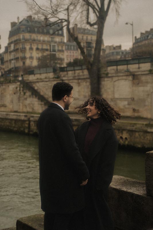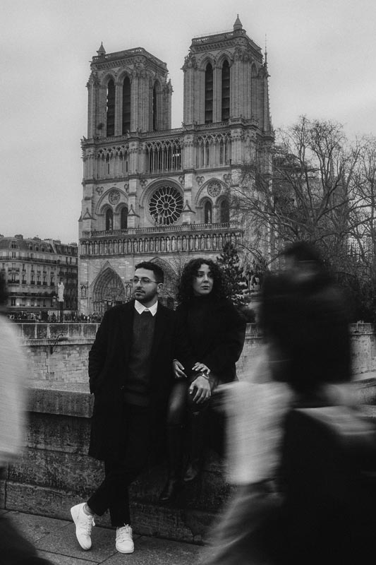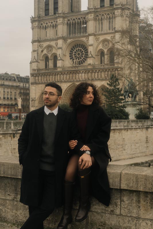 Capturing Mahsa and Amir Hossein’s unique couple session in Paris, we focused on creating cinematic, romantic moments rather than routine tourist shots. Using urban settings with the Notre-Dame backdrop, the session highlighted the couple’s authentic connection and joyful energy. One of the happiest and most charming couples I’ve worked with, Mahsa and Amir Hossein’s shoot emphasizes intimacy and romace in the heart of the city, making it an unforgettable Parisian experience.